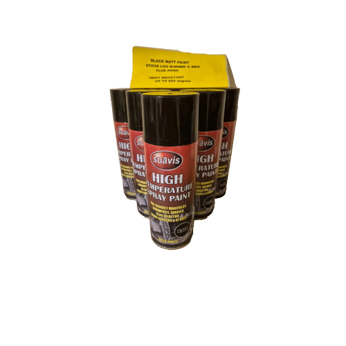 High-temperature Suavis spray paint designed for surfaces exposed to extreme heat. Provides a durable matt black finish that resists cracking, peeling, and fading.